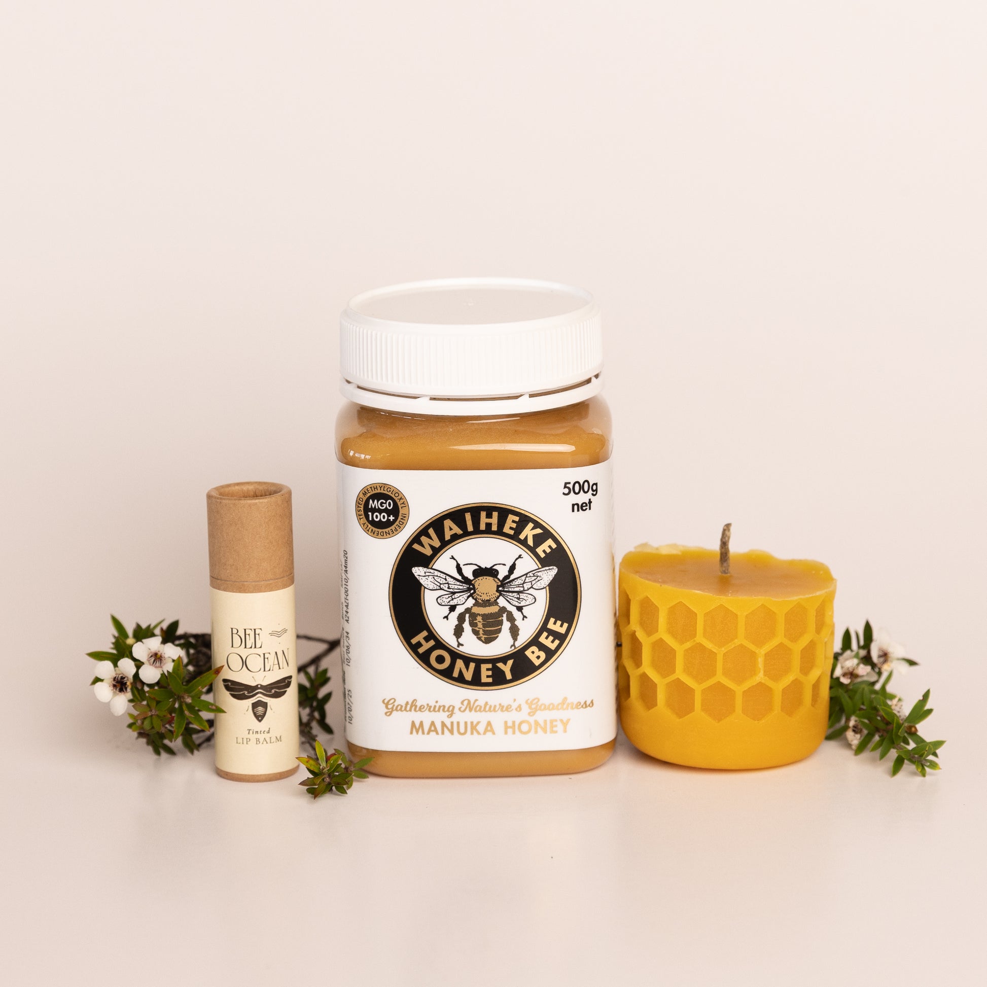 500 gram Manuka Honey Mgo 100+ , natural lip balm red colour and 85 gram pure beeswax candle Combo